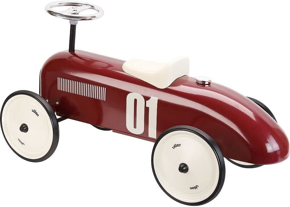 This retro-inspired race car ride-on toy, made of metal in red by Vilac, will delight...