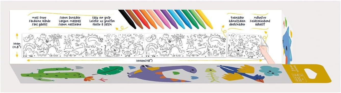 Crayon set + roll of dinosaur drawings - hakuyoka 223067