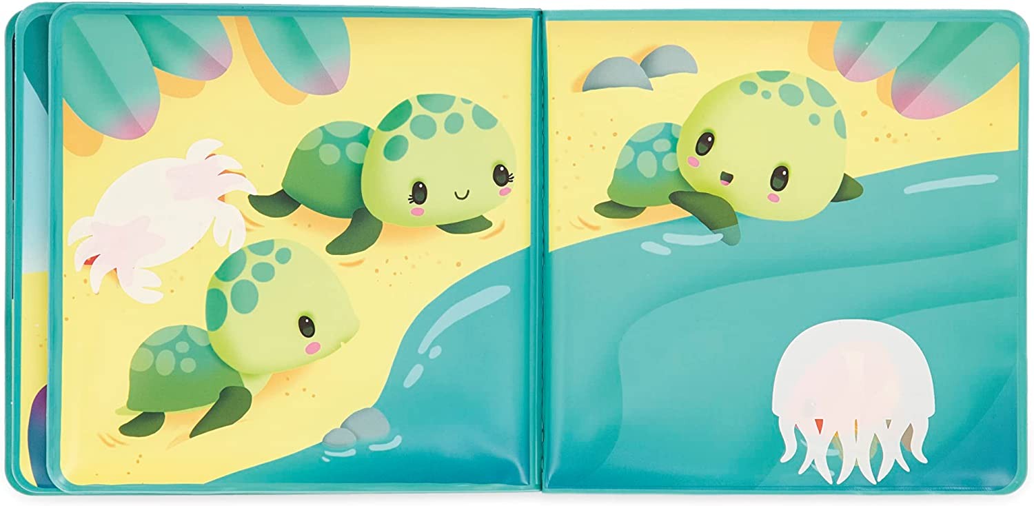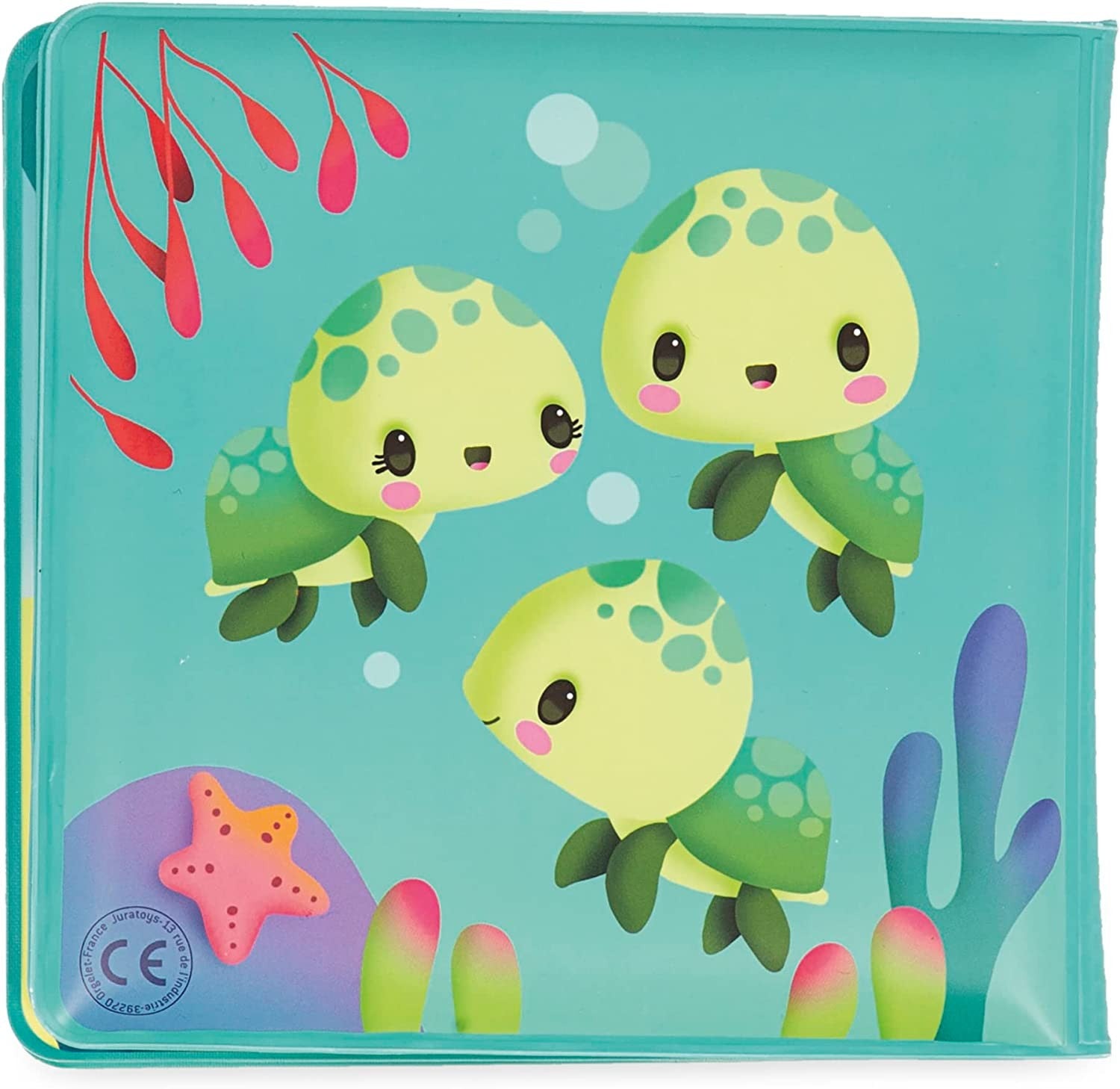 Bath book for babies from 10 months old, with 8 beautiful illustrated pages of the magical world of sea turtles.