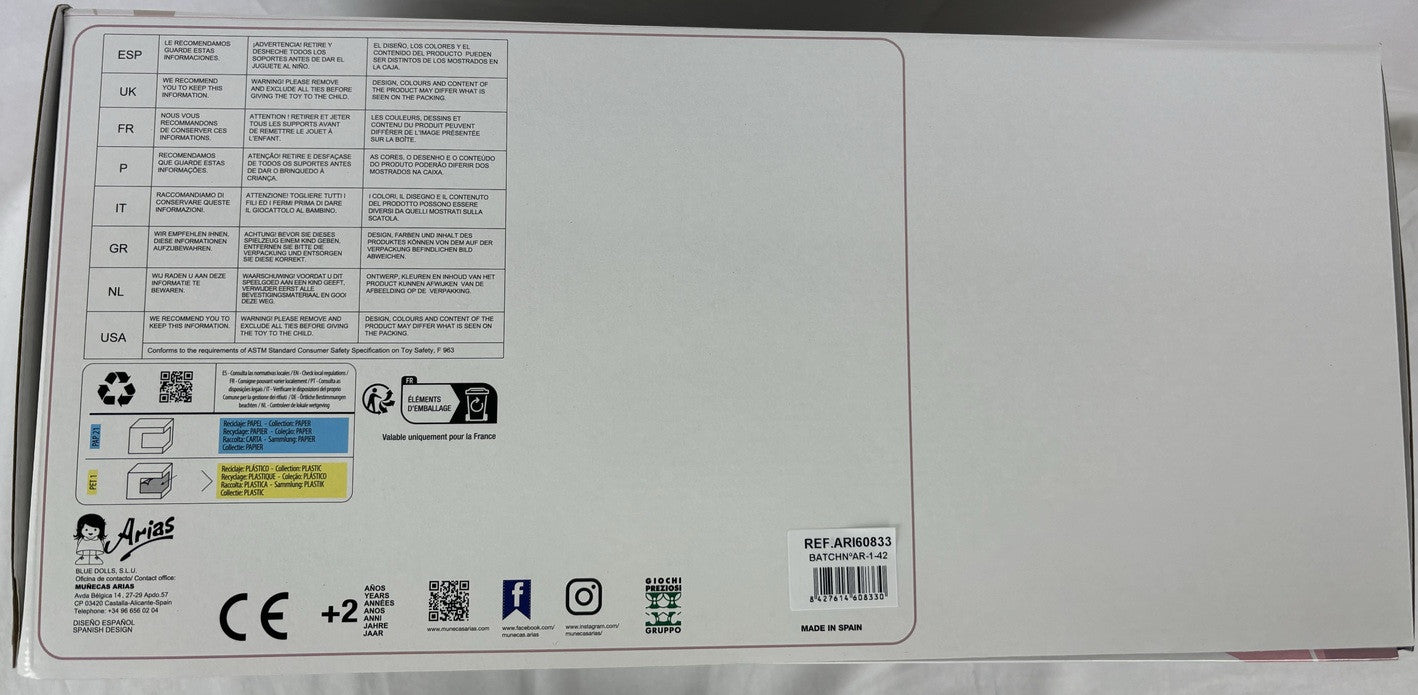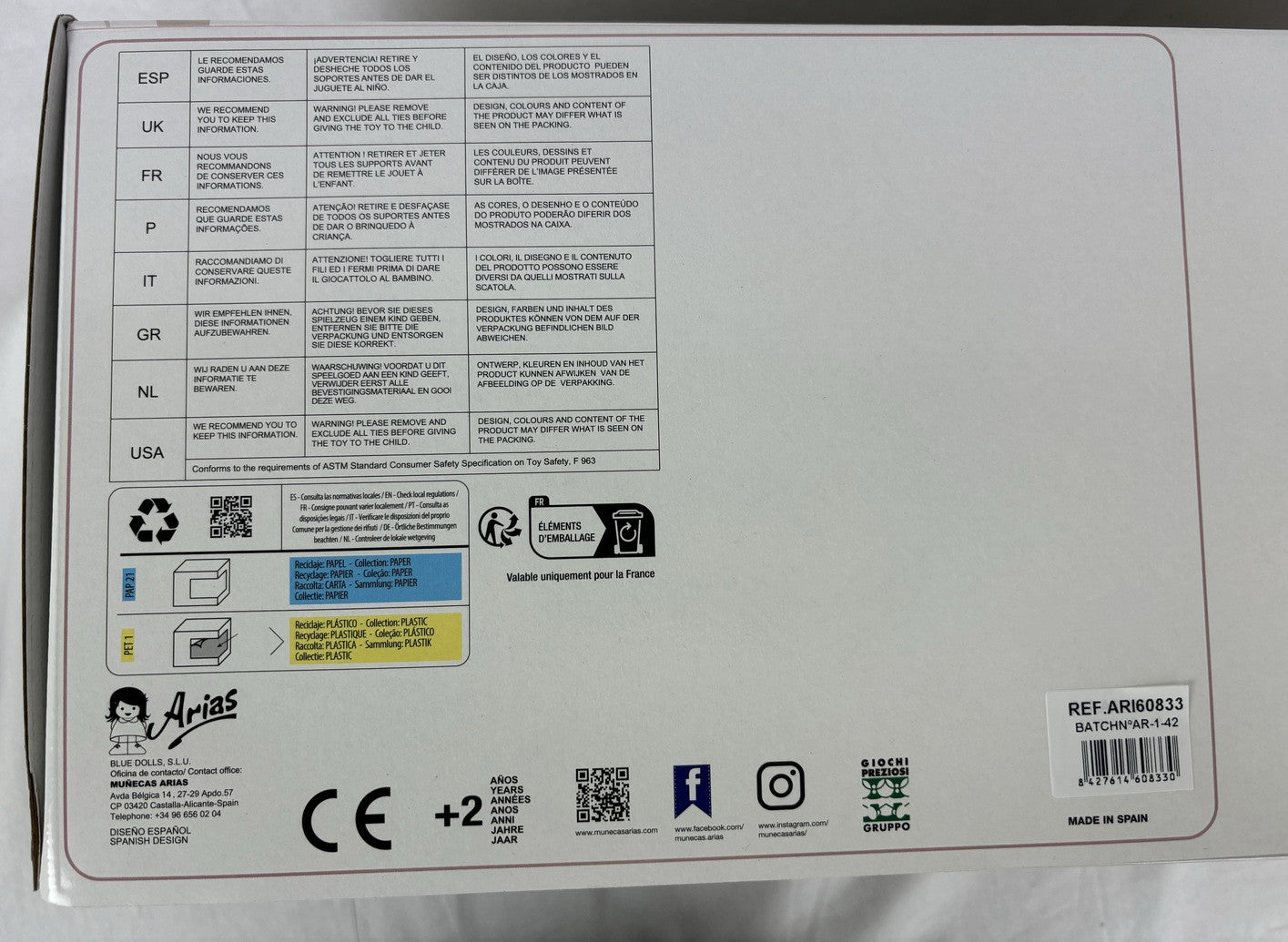 In short, the 38cm ELEGANCE ARIA doll is the perfect gift for any boy or girl who wants to enjoy the company of an adorable and lifelike baby. Don't hesitate to bring Aria home and see how she brightens your little one's life with her sweetness and charm! 🎀🍼🧸