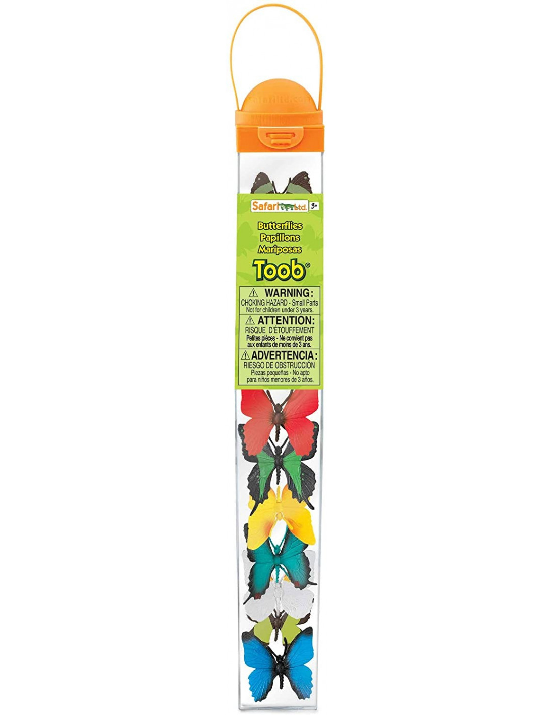 Tubo con figuras de mariposas Safari Ltd TOOBS que forman parte de una colección de réplicas en miniatura pintadas a mano con colores vibrantes.