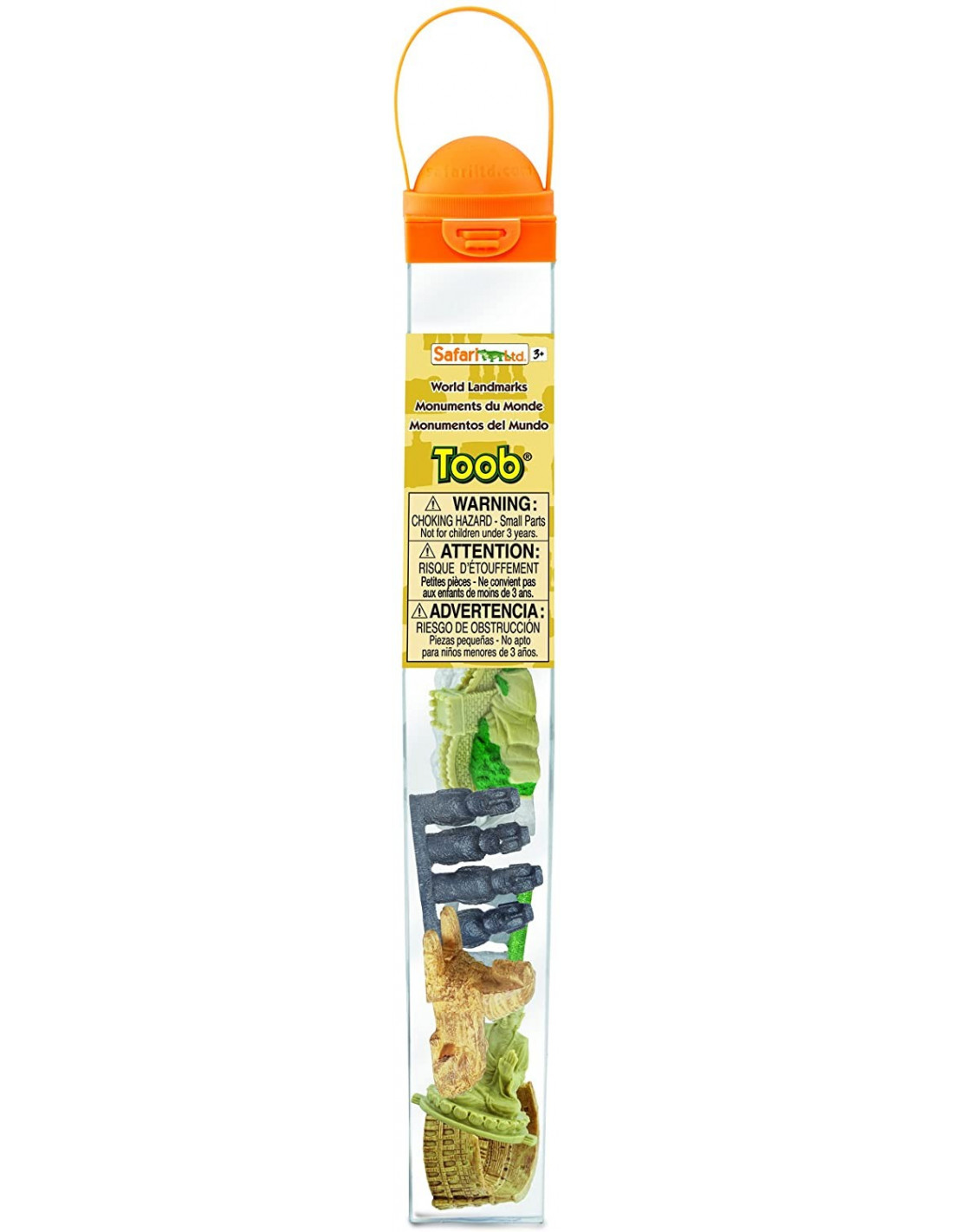 Tubo con figuras monumentos del mundo Safari Ltd TOOBS que forman parte de una colección de réplicas en miniatura pintadas a mano con colores vibrantes.