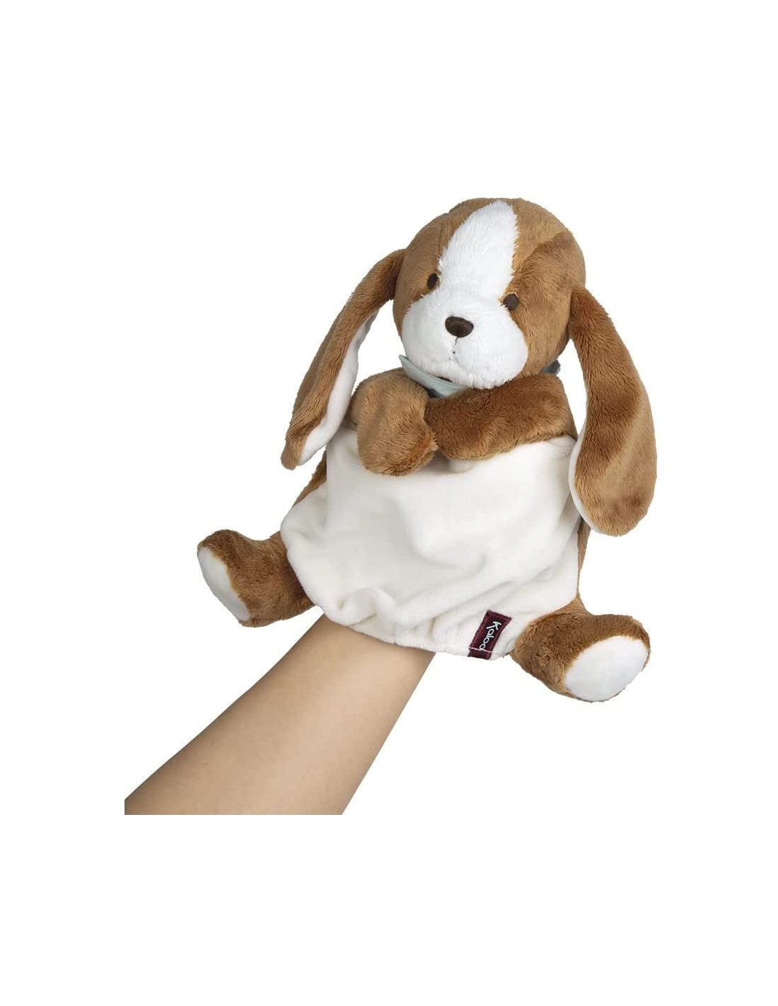 Peluche marioneta de perro Tiramisú , simpático perrito con largas orejas que puede utilizarse de marioneta .