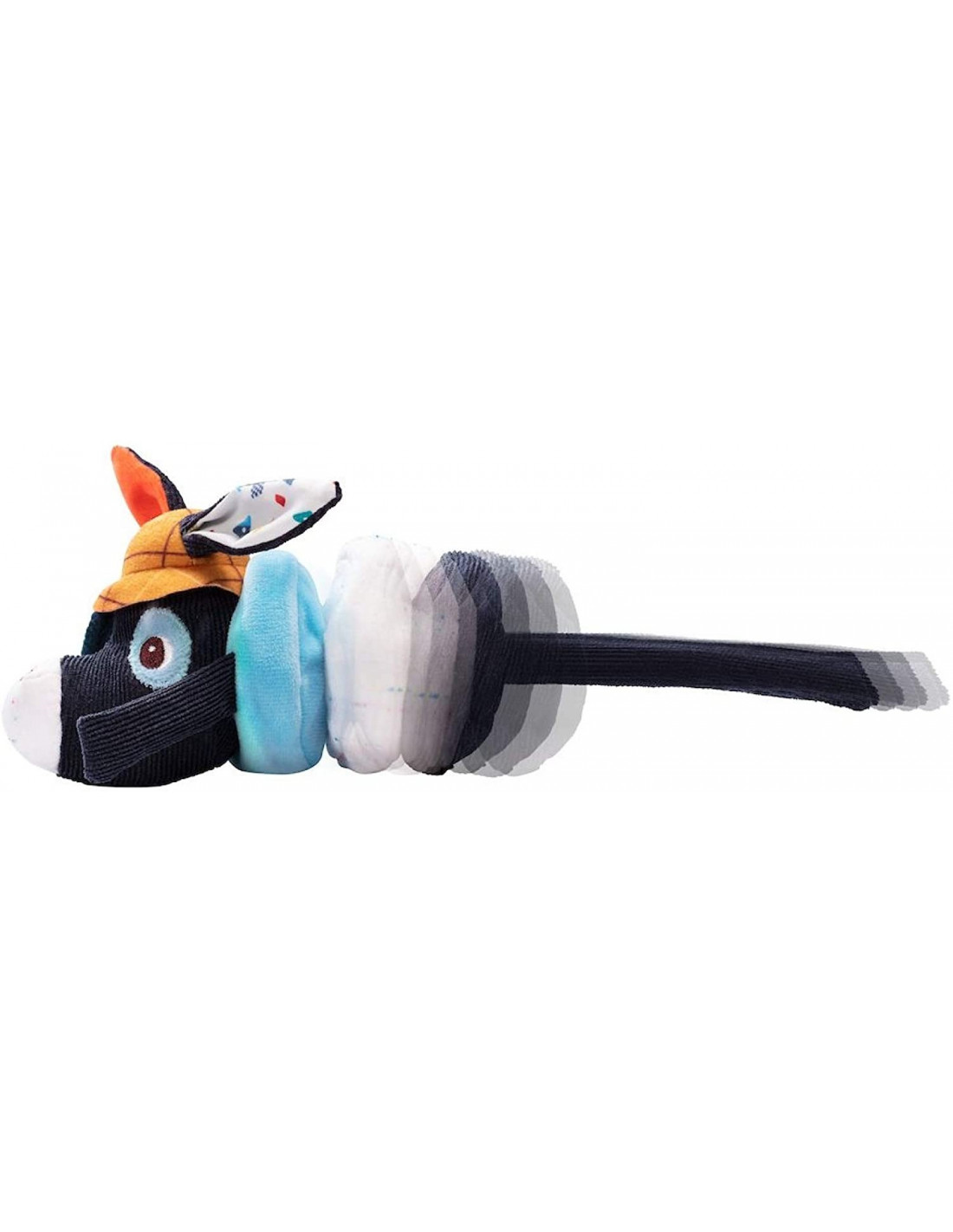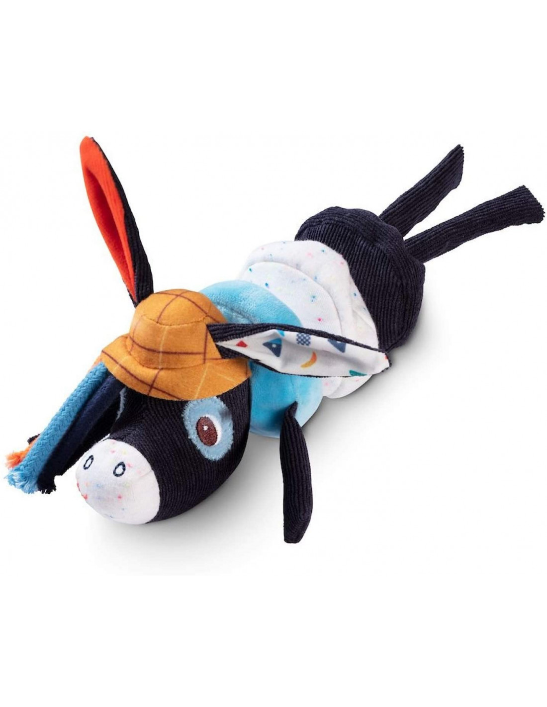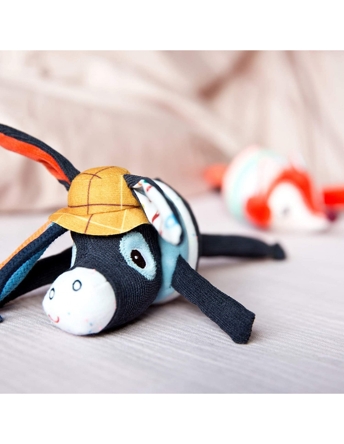 Peluche mini bailarin de Lilliputiens el burrito Ignace , al tirarle de sus patitas comienza a balilar .