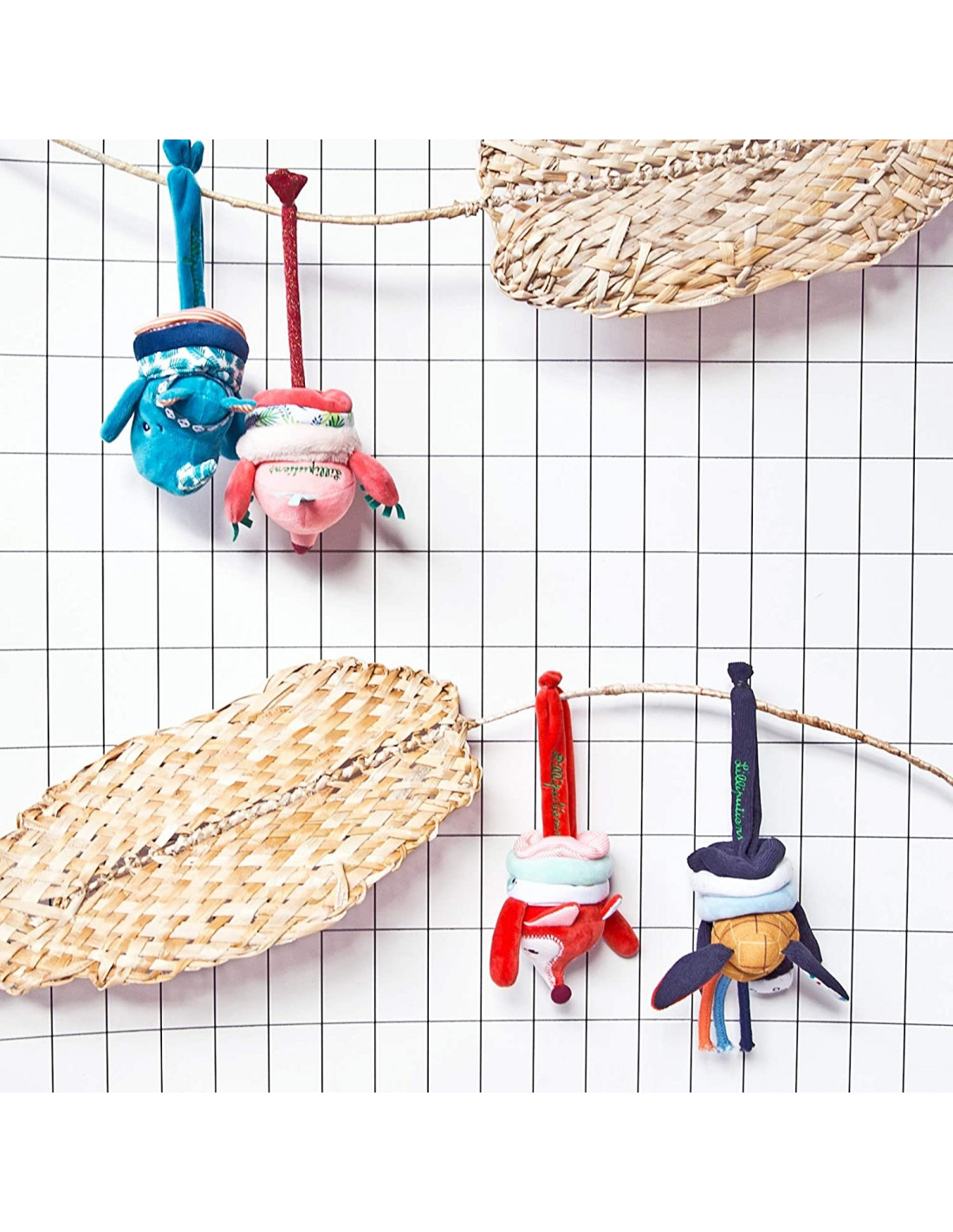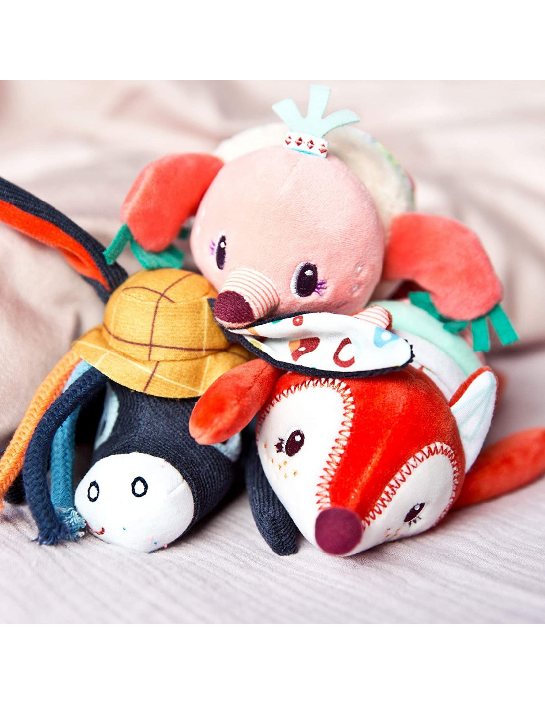 Al tirarle de las patas, este sonajero comienza a bailar alegremente. Estimula la vista , las habilidades motrices finas , la comprensión y el oido de los más pequeños . Fácil de agarrar para las pequeñas manitas de los niños , muy suave y agradable de abrazar , con diferentes texturas para explorar .También tiene una parte crujiente que les asombrará al tocarla .