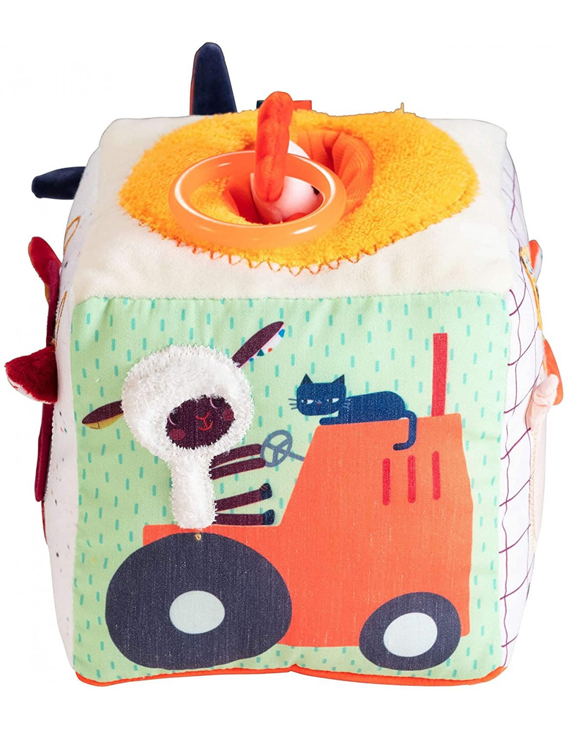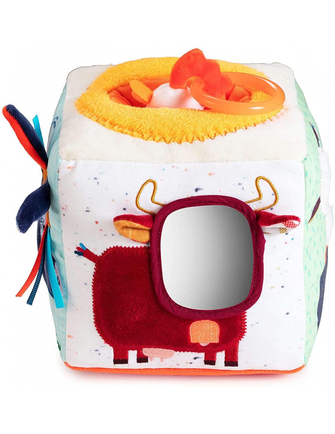 Cubo de actividades con diferentes motivos y texturas de nuestra amigo el burrito Ignace de la marca Liliputiens .