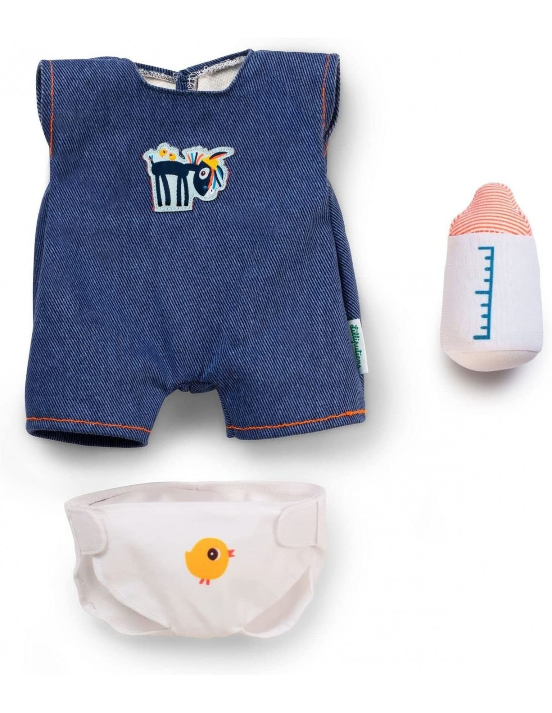 La caja consta de la muñeca Charlie, un biberón imantado, un pañal y un pijama. La ropa es fácil de poner y quitar, perfecta para manos pequeñas.