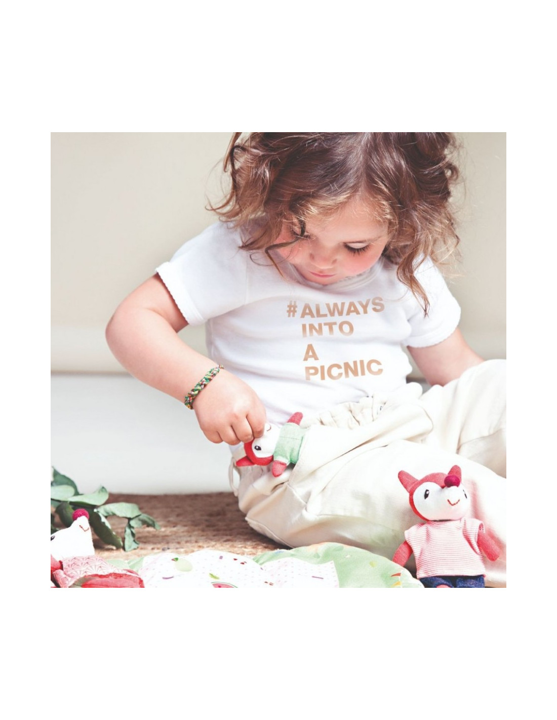 La pequeña Alice , su mamá y su papá se van a dormir a sus cómodas camas después de un día de picnic . No te olvides de desvestirlos primero. Ya verás lo fácil que es quitarles la ropa. Puedes llevarte cómodamente esta alfombra y sus protagonistas donde vayas, para que tu bebé disfrute de grandes aventuras dondequiera que esté con estos simpáticos personajes..