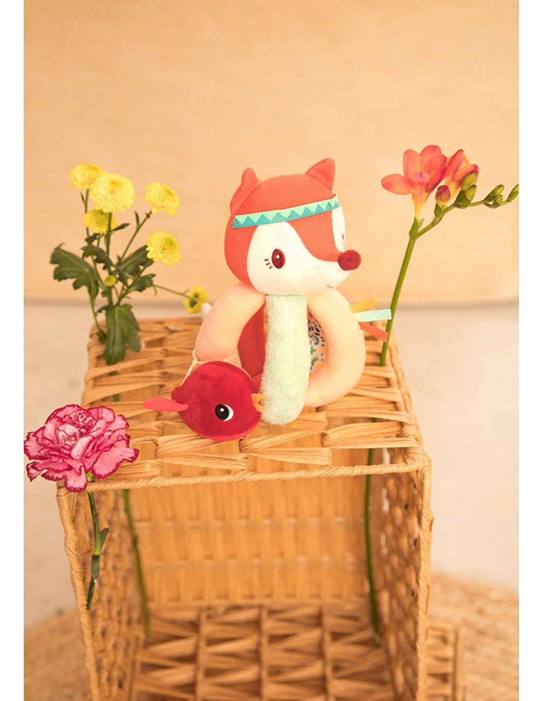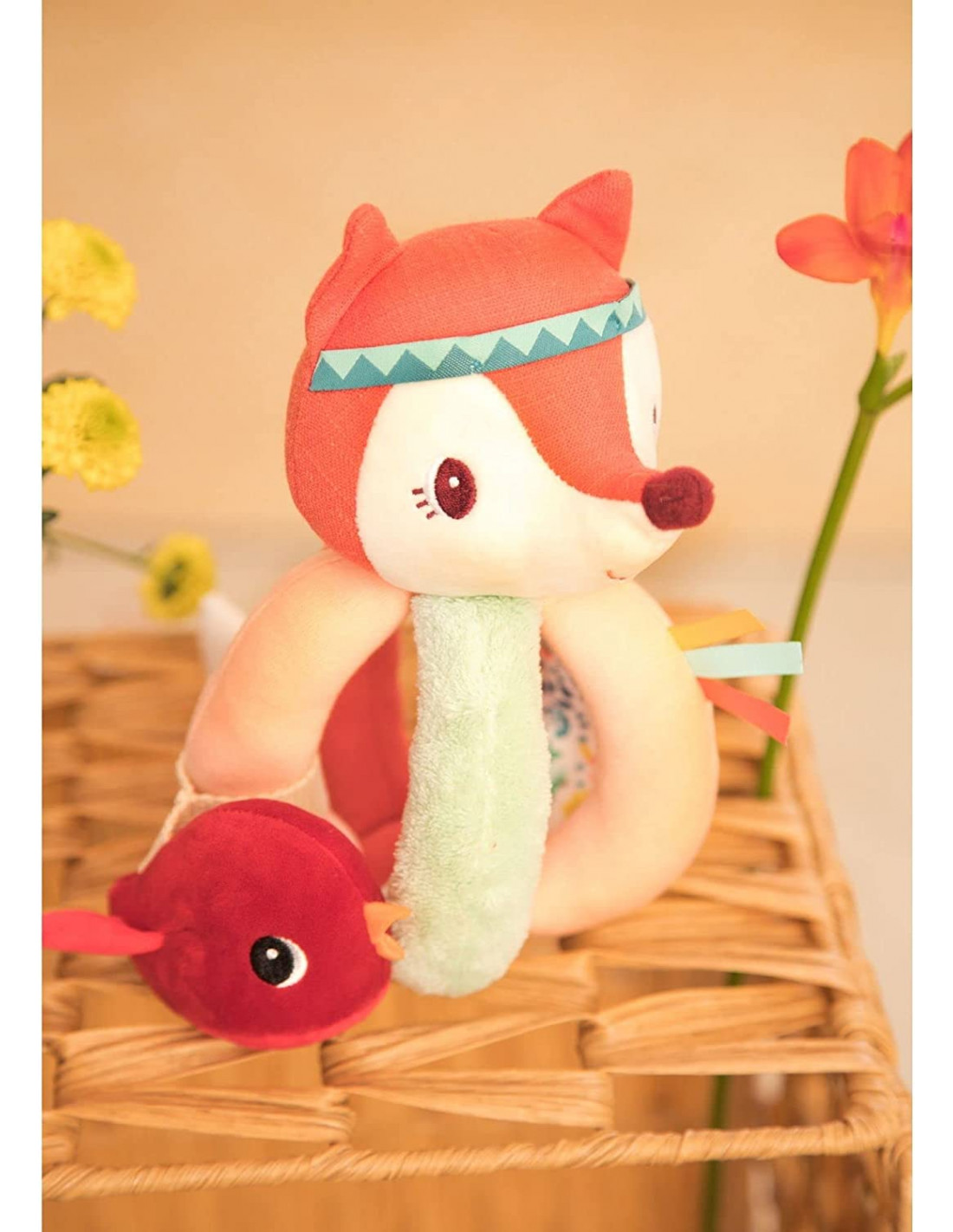 Sonajero de la marca Lilliputiens de nuestro amiga Alice , un original sonajero muy fácil de agarrar por las manos de los pequeños por sus asas . Un precioso sonajero con los colores de Alice , que ofrece una mezcla de texturas y muchas actividades para despertar al bebé: sonajeros, papel que susurra . Entre las asas se encuentra escondido un amigo .