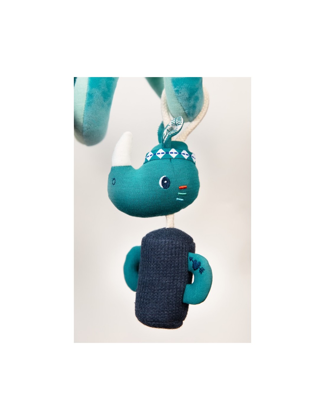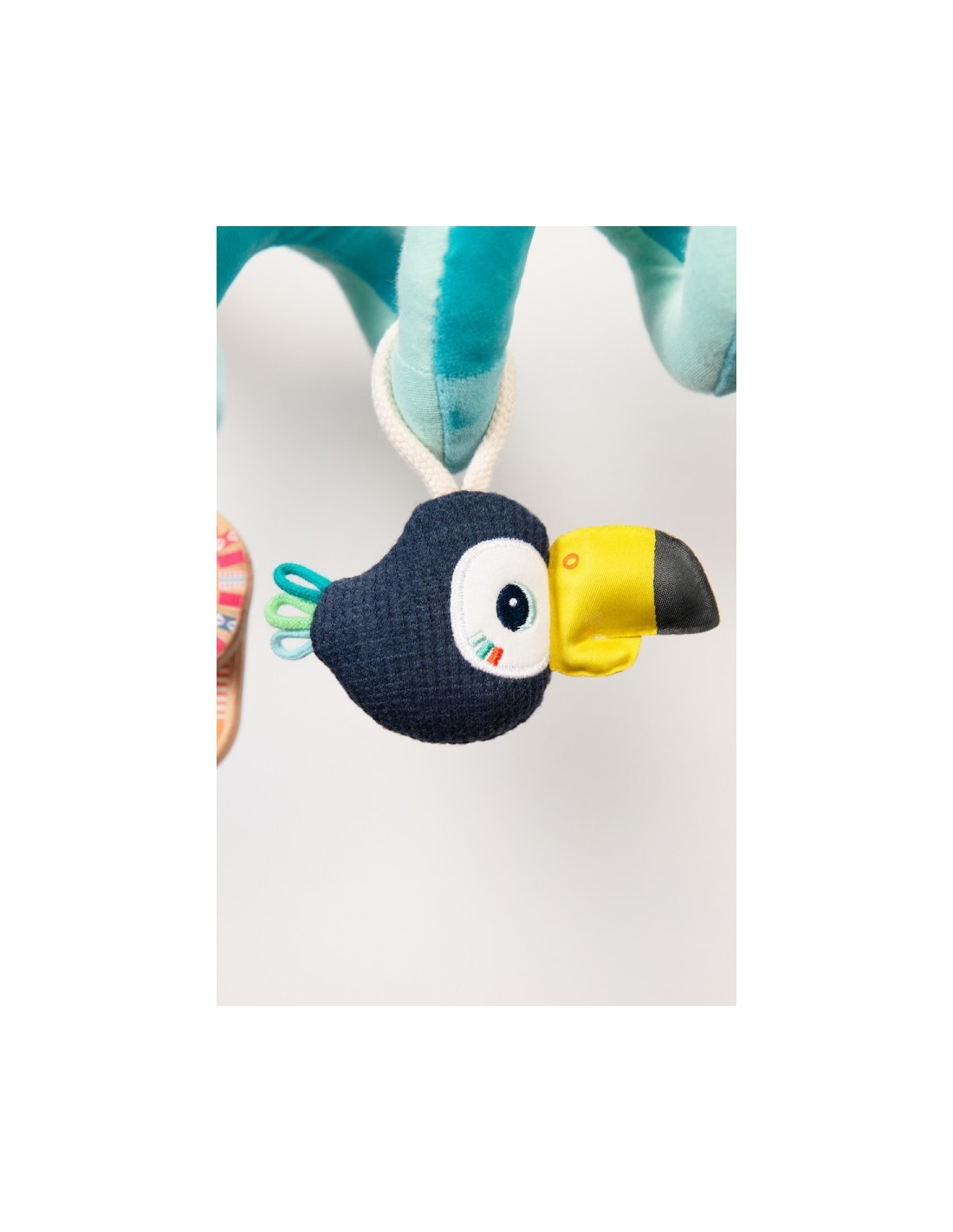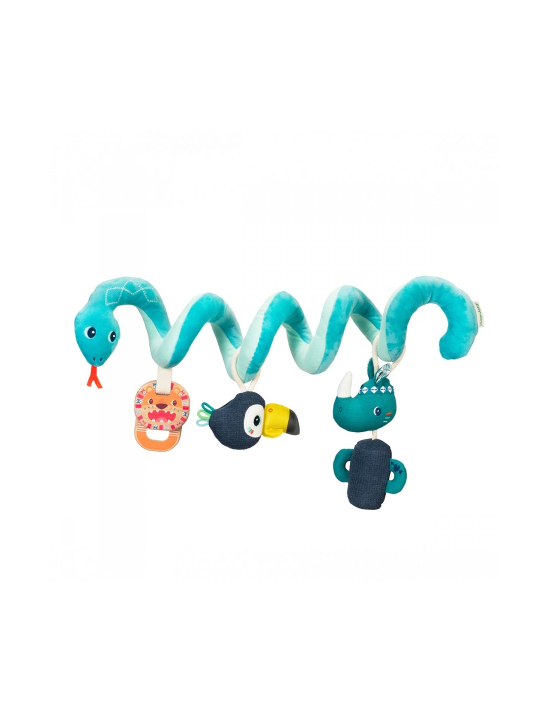 Sonidos y texturas sorprendentes, colores contrastantes…, este espiral ofrece una variedad de actividades diseñadas para estimular los sentidos del bebé durante el paseo o el viaje en coche.