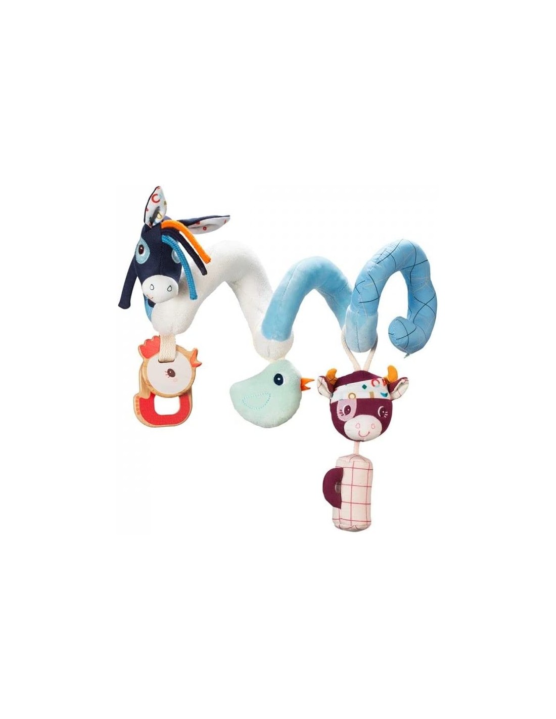 Sorprendentes sonidos y texturas, contrastes de tejidos y colores, Ignace el burro y sus amigos tienen preparadas todo tipo de actividades divertidas para tu peque!. Diseñada para estimular los sentidos del bebé durante una caminata o un viaje en automóvil, la espiral de actividades de la granja de Lilliputiens se puede enrollar alrededor de la cuna, el cochecito o el asiento para bebés.