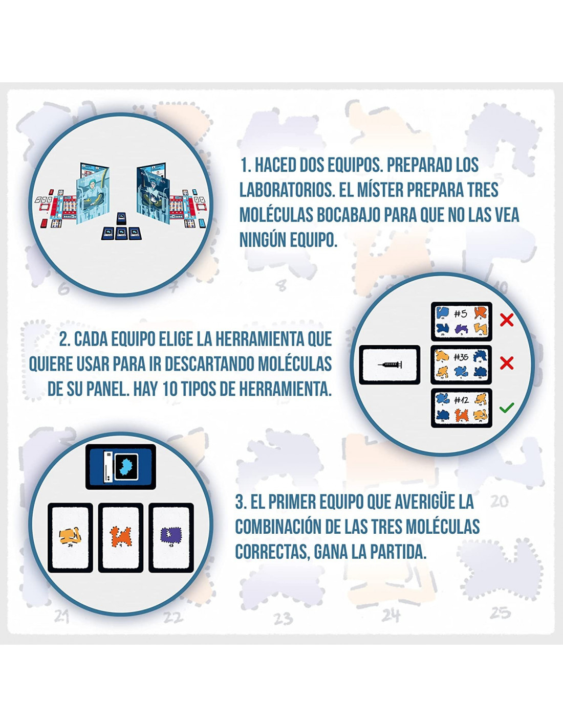 Juego de mesa en donde dos laboratorios competirán por ser los primeros en encontrar el antídoto de tres moléculas .