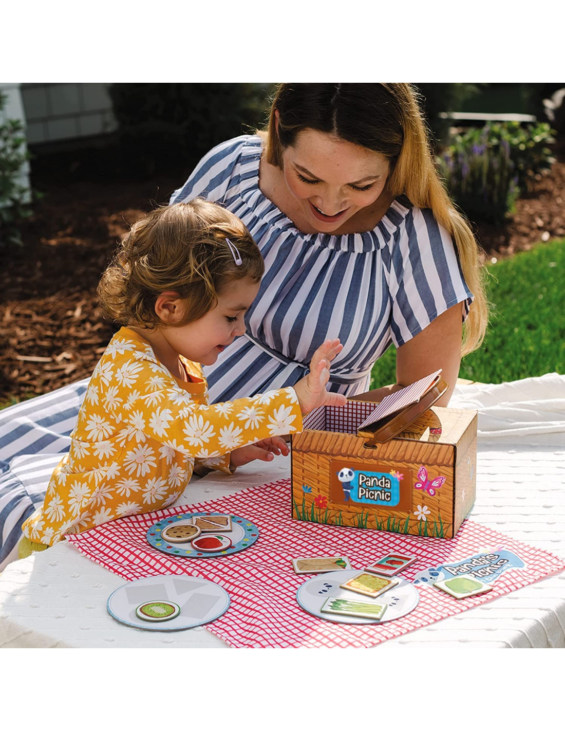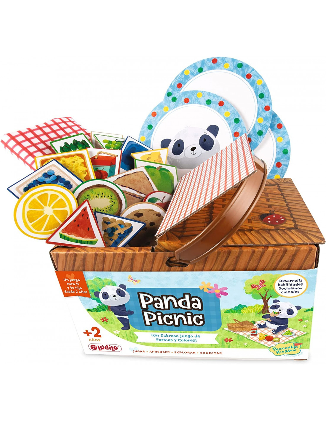 Contiene : 16 piezas de alimentos de picnic, 3 platos de picnic , mantel de picnic , cesta de picnic , reglas del juego , guía para padres .