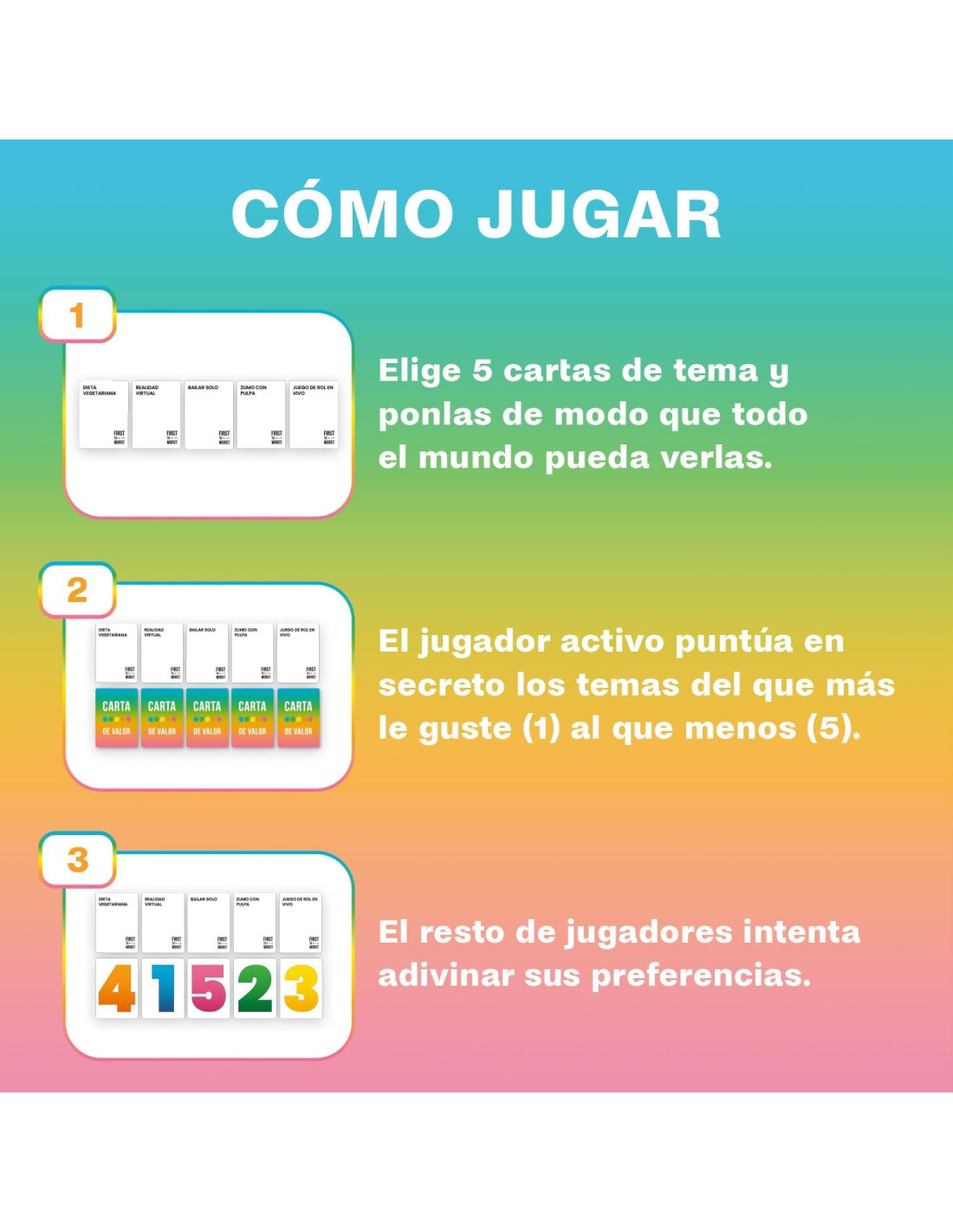 ¡Prepárate para horas de diversión y risas con First to Worst! 🎉🤩 No te pierdas la oportunidad de demostrar tus habilidades y disfrutar de momentos inolvidables con este increíble juego de mesa. ¡A jugar y adivinar se ha dicho! 🤗🎲