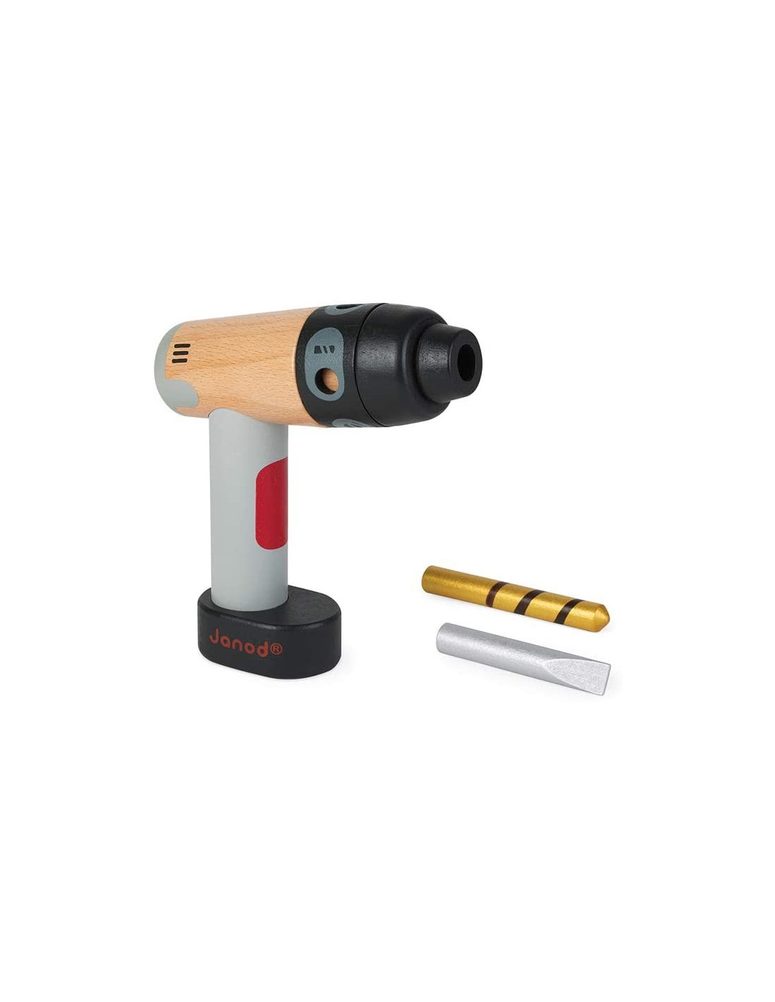 - CARACTERÍSTICAS: Contiene 1 taladro para madera, 2 accesorios para taladrar, atornillar / desatornillar. Dimensiones del juguete: Largo 18,5 cm x Ancho 4,5 cm x Alto 14,5 cm. Material (s) utilizado (s): Madera (maciza). Rango de edad recomendado: de 3 a 8 años