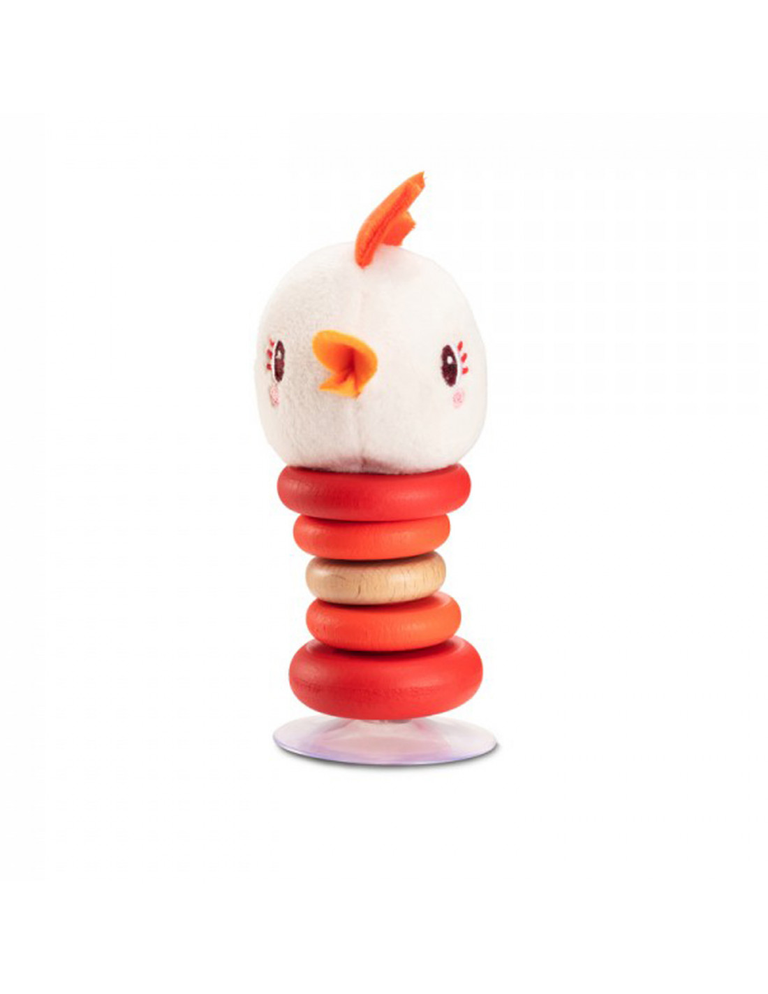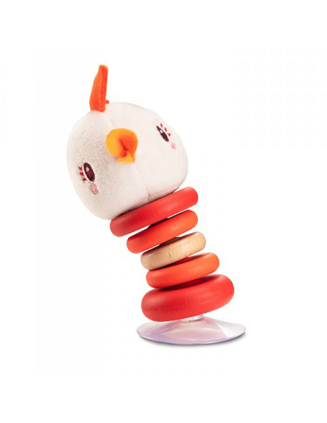 Este sonajero se mueve alegremente en todas las direcciones al menor empujón. Gracias a la ventosa, se mantendrá perfectamente erguido y podrás colocarlo en cualquier lugar.