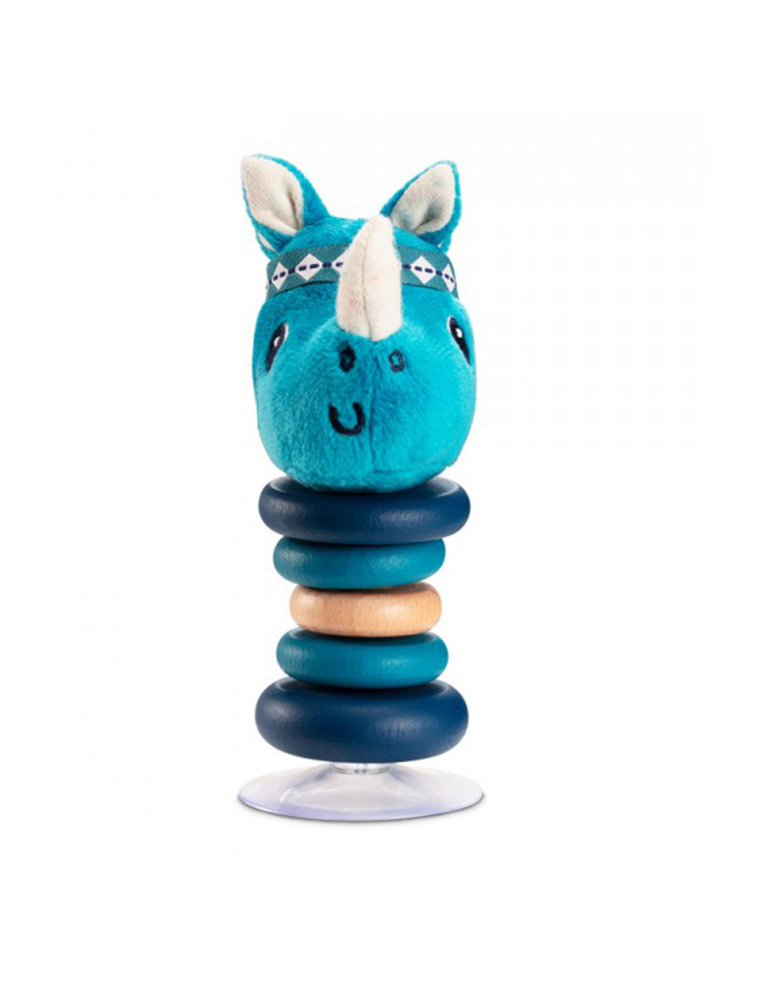 Descubre el sonajero columpio con ventosa Marius el rinoceronte de Lilliputiens, un maravilloso juguete de aprendizaje temprano para divertir y estimular a los bebés a partir de los 6 meses. Este sonajero articulado se adhiere muy fácilmente a todas las superficies gracias a su ventosa. Compuesto por varios materiales, este divertido juguete estimulará los sentidos de tu hijo. El cuerpo de Marius el rinoceronte está formado por varios anillos de madera, que chocan y crean así un sonido y una ondulación. La cabeza del animal está hecha de tela y contiene un sonajero, que el bebé puede escuchar moviendo el juguete.
