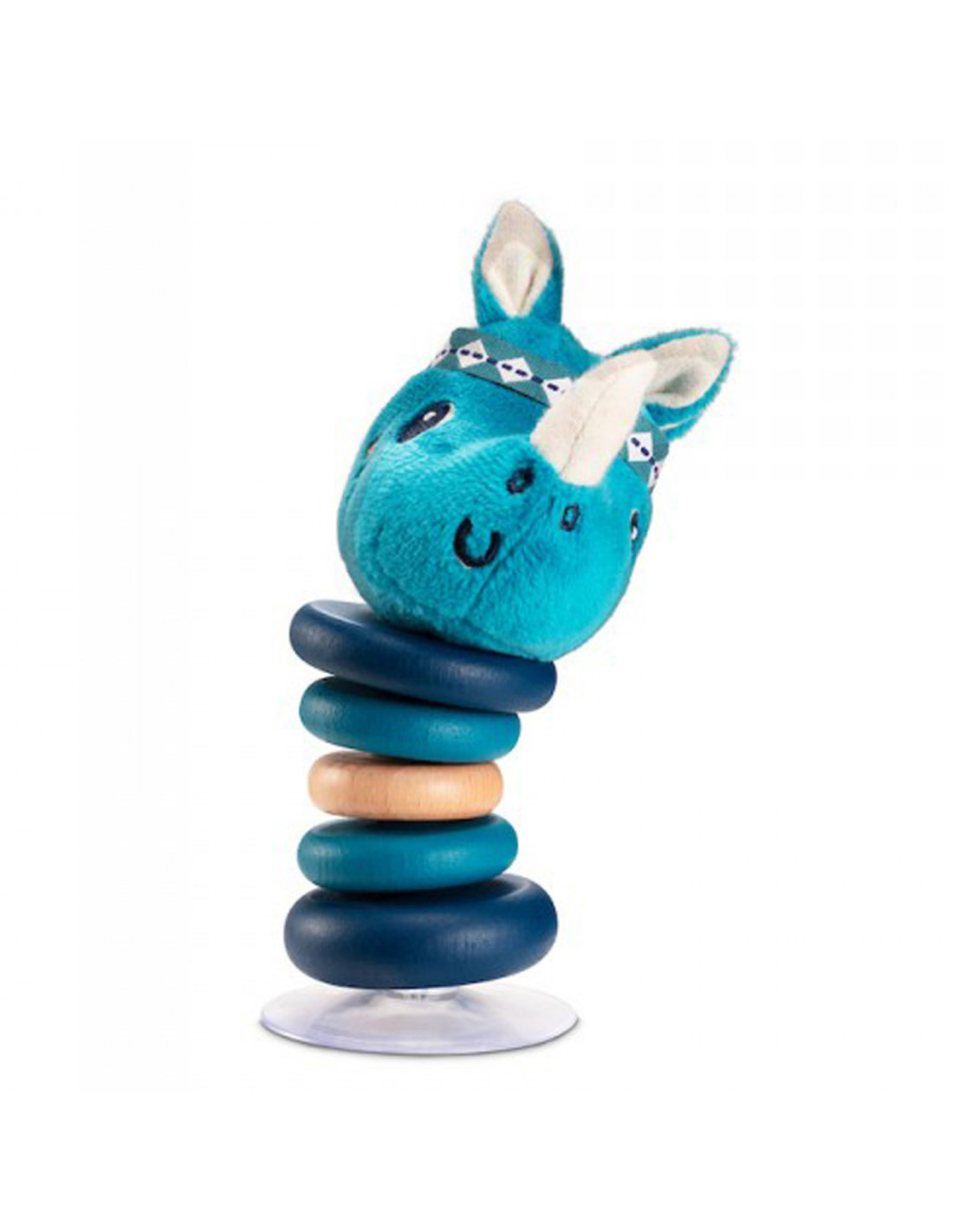 Este sonajero se mueve alegremente en todas las direcciones al menor empujón. Gracias a la ventosa, se mantendrá perfectamente erguido y podrás colocarlo en cualquier lugar.