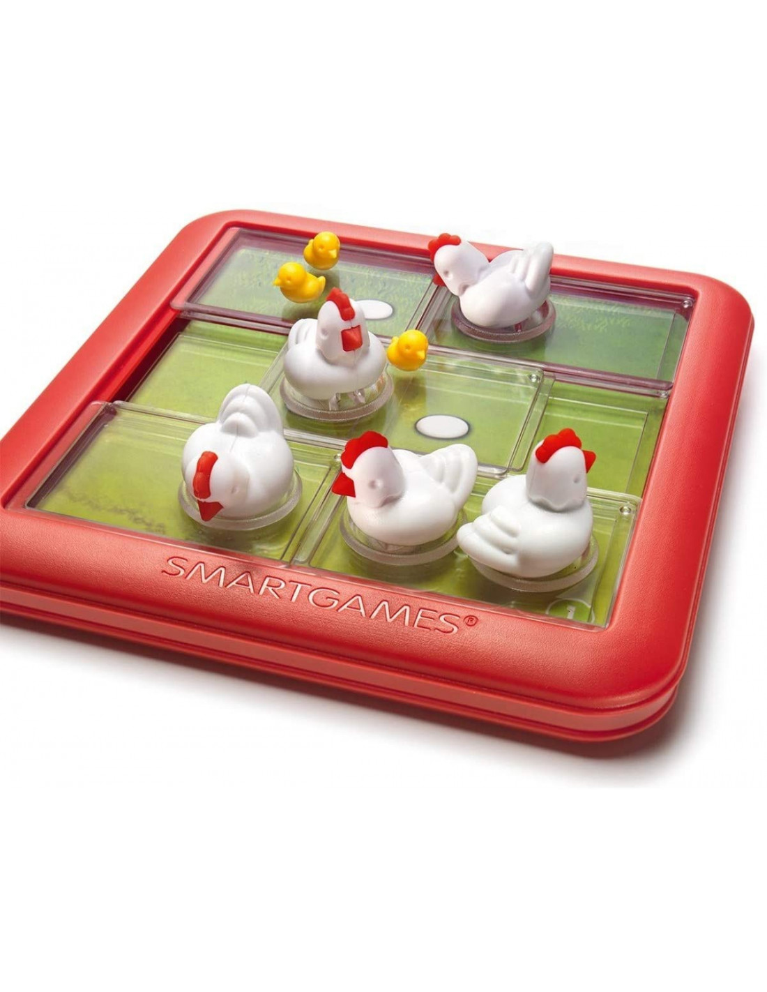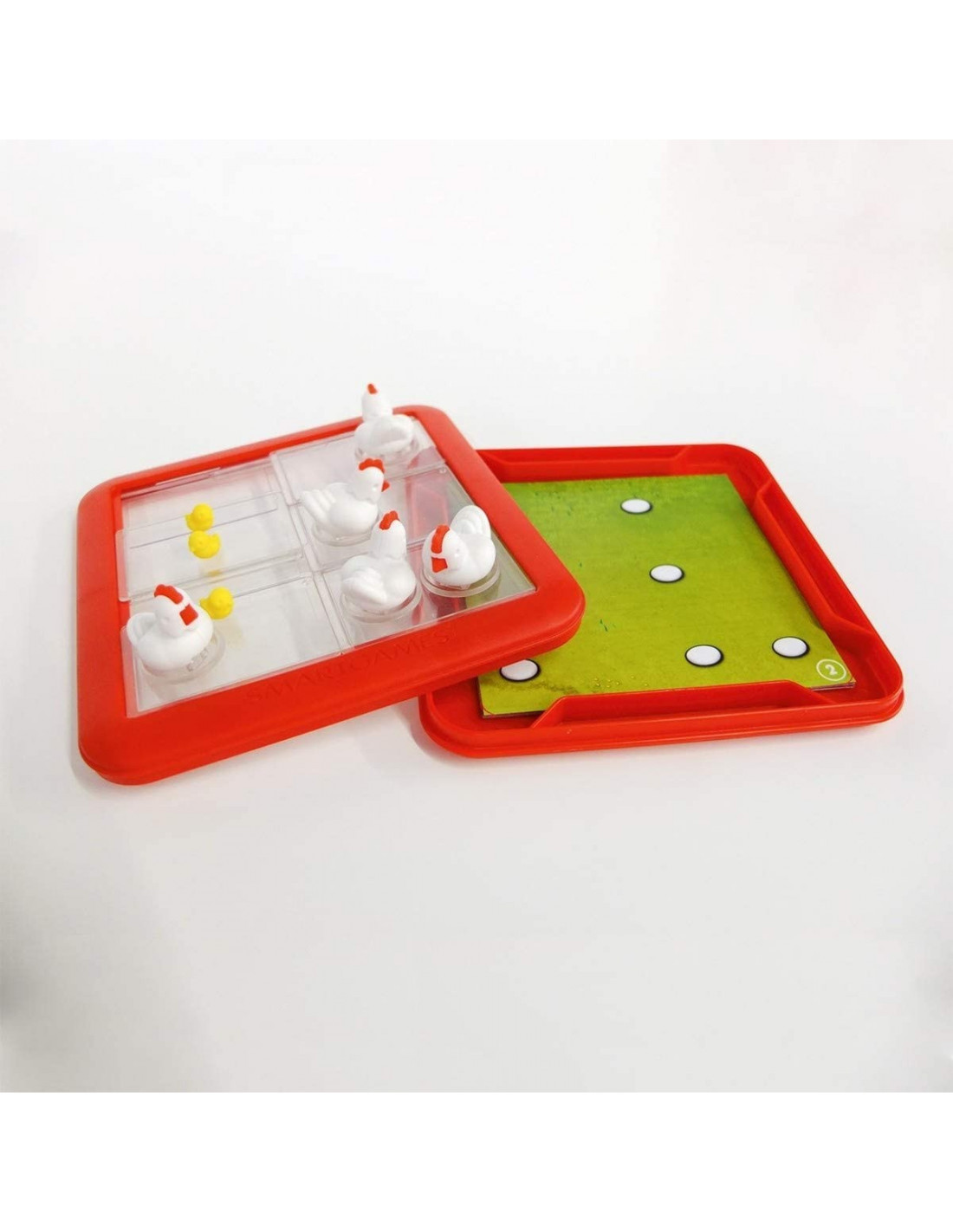 Es un juego educativo de un jugador para mayores de 4 años que contiene 48 retos con 4 niveles diferentes. Contiene 5 piezas deslizantes con gallinas y pollitos en 3D.