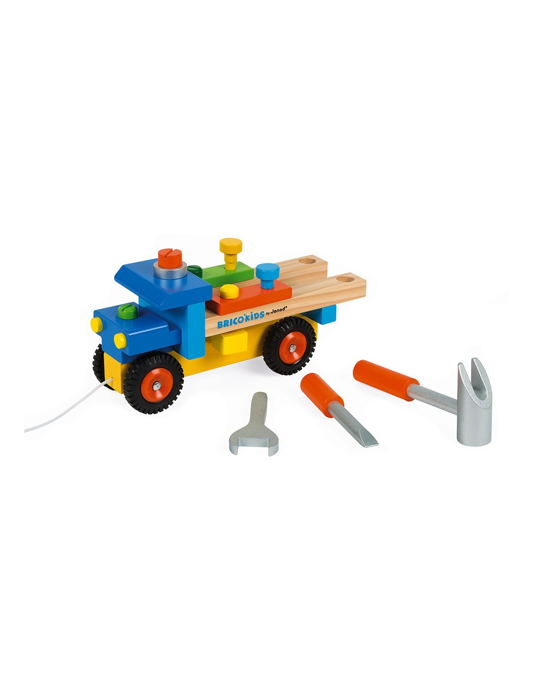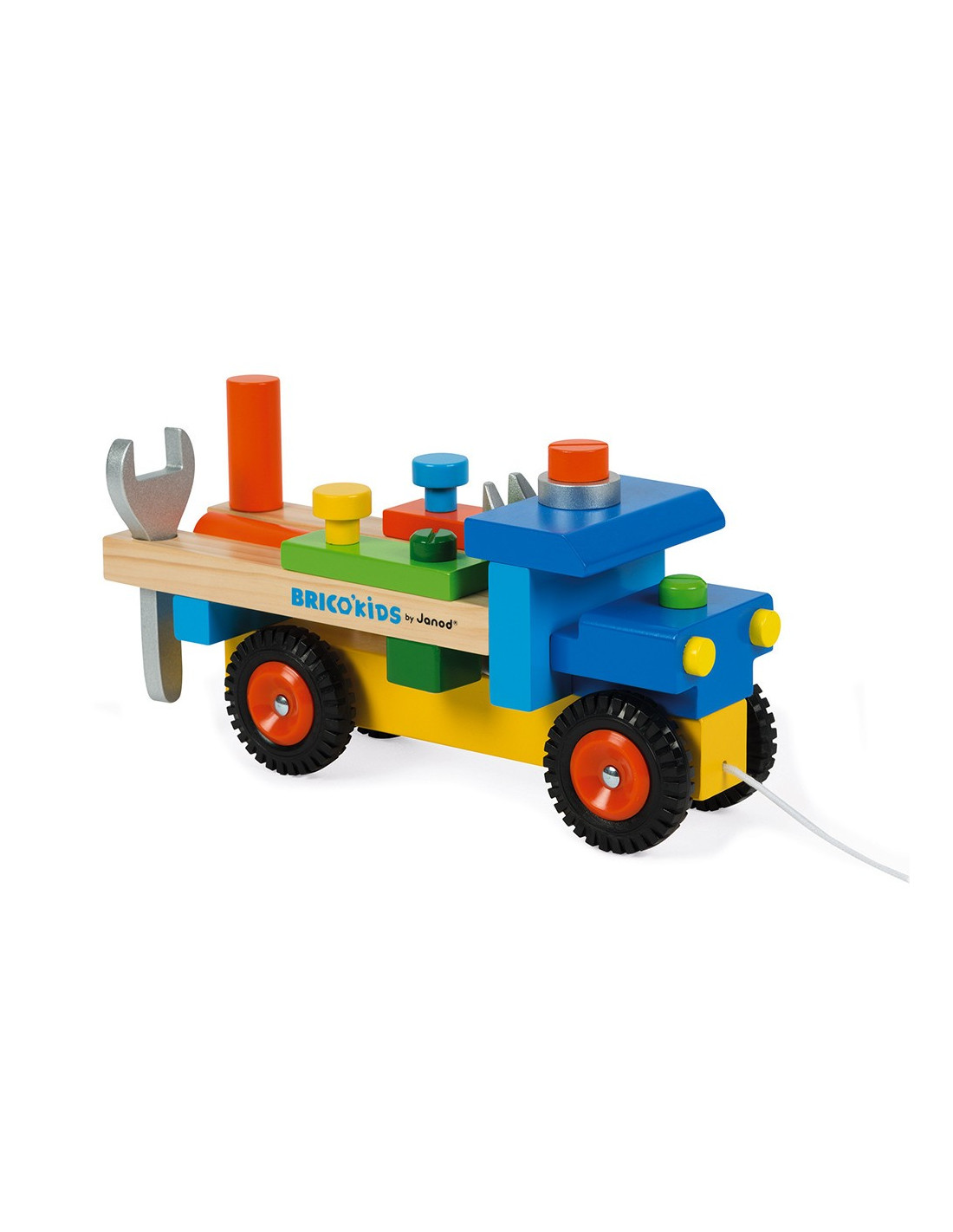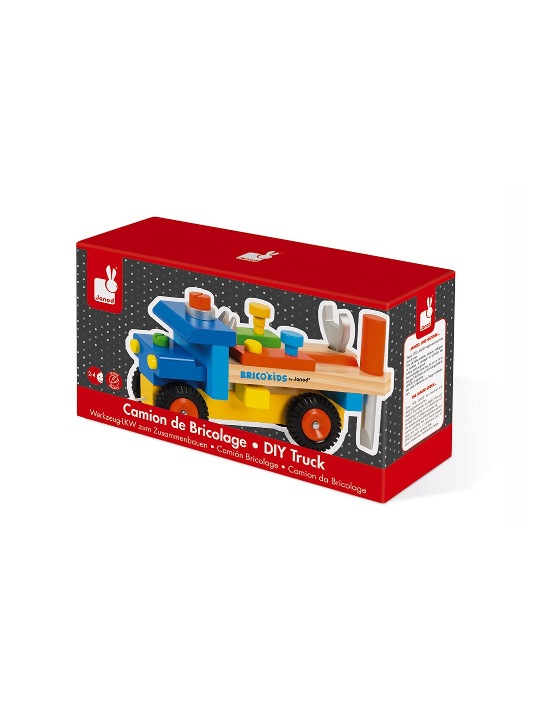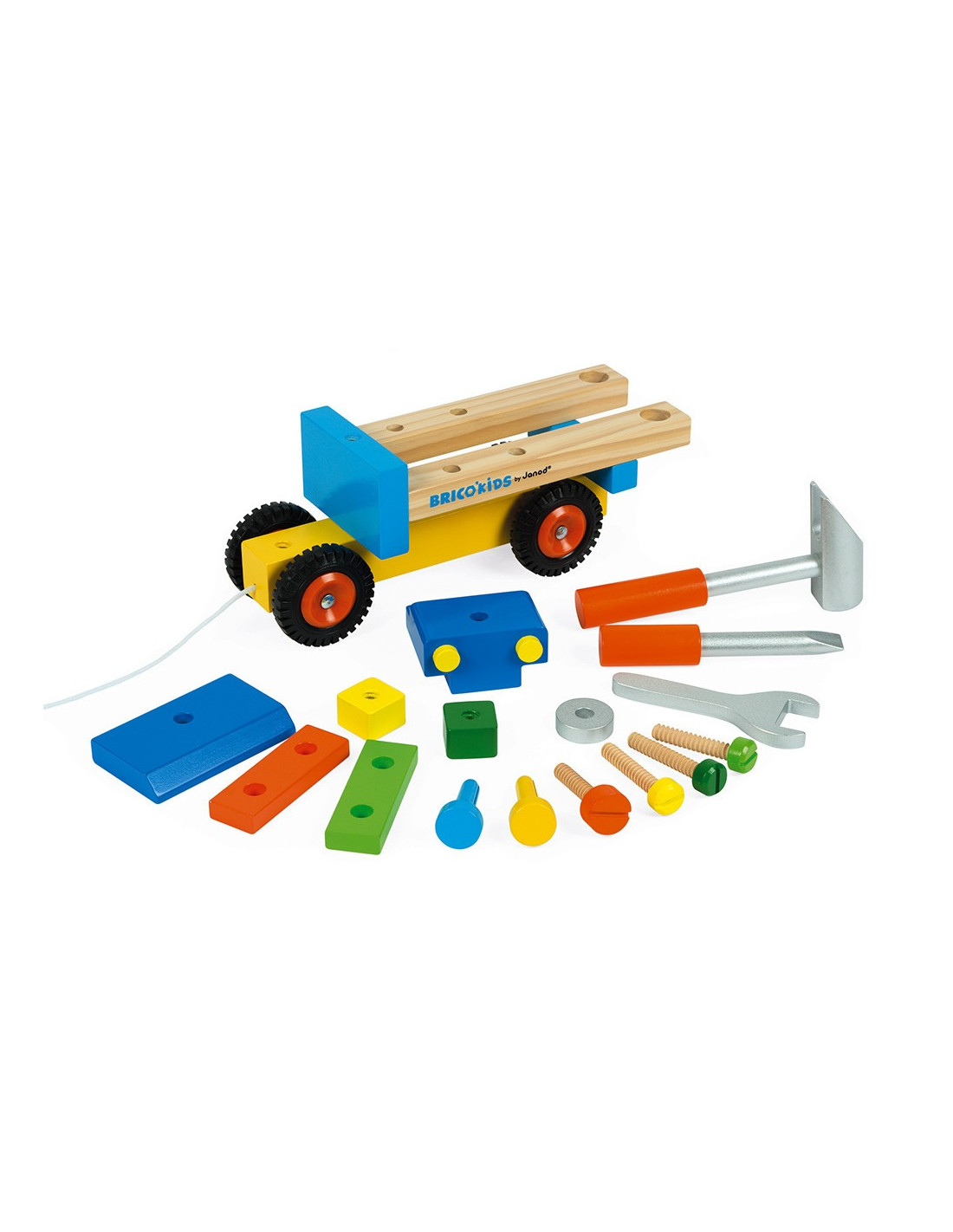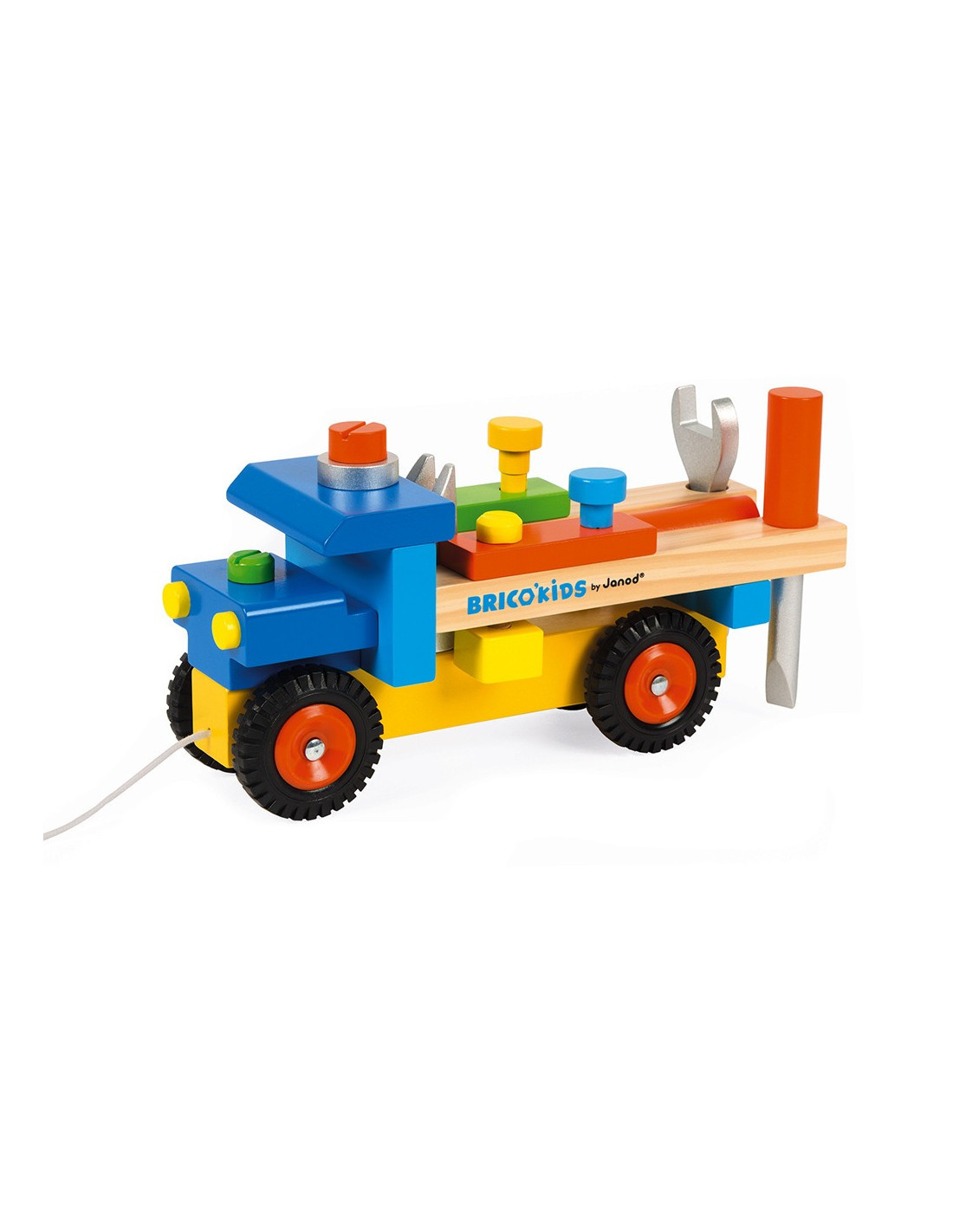 Este camión de madera es un juego de construcción 2 en 1:con tuercas, placas y tornillos que habrá que montar para reconstruir un magnifico camión, y un juguete arrastrable para desarrollar las capacidades motrices de su hijo. Se suministra con 17 piezas, incluidas 3 herramientas. Ruedas sólidas, al estar elaboradas en plástico - Camión robusto gracias a los ejes de metal de las ruedas