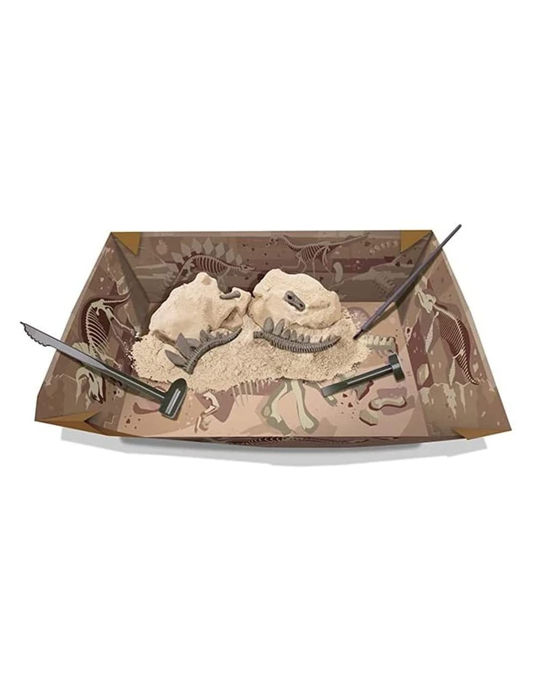 Los niños tendrán que excavar con cuidado el bloque de yeso con la herramienta proporcionada como si fuesen paleontólogos de verdad , y descubrir los huesos de un Stegosaurus .