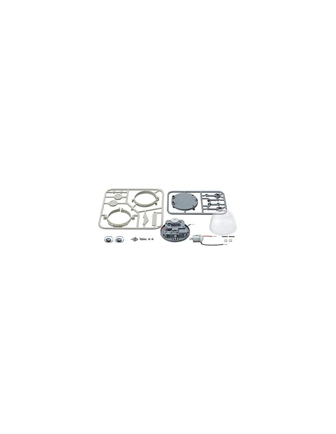 Contiene: tapa de terminar x 2 soporte para ojo x 2 aro inferior de la lata aro superior de la lata placa superior del engranaje tapa de la batería brazo inferior x 2 brazo superior x 2 tapa de la base base con cables tapa transparente motor con cables eje x 2 ojo x 2 tornillo y tuerca x 2 engranaje x 2 tornillo pequeño x 5.