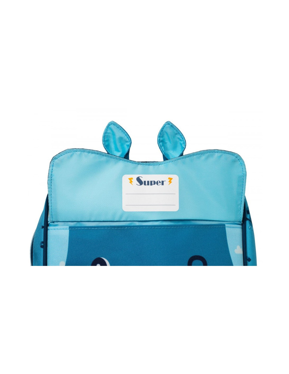 Tiene un compartimento principal con cierre de cremallera y un compartimento frontal con cierre de solapa con espacio para escribir el nombre de los niños .