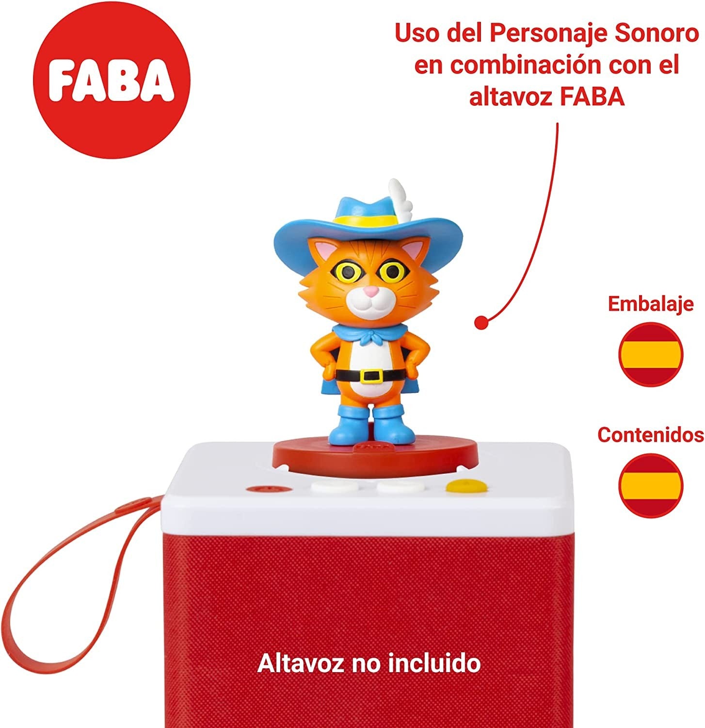 Se trata de un juguete interactivo que reproduce dos cuentos famosos: El Gato con Botas y La Cenicienta. Cada cuento tiene su propio personaje sonoro que narra la historia con voces y efectos de sonido. FABA