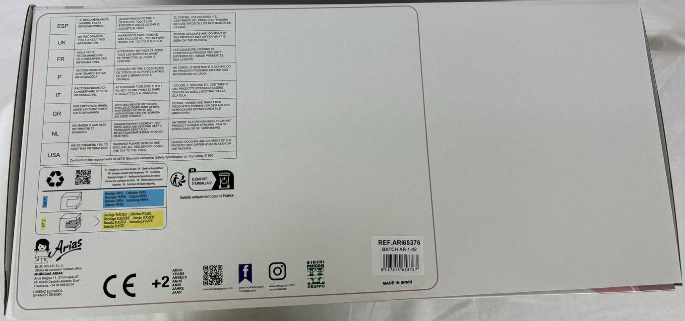 Muñeca con Peso Elegance 45 cm - Adi Rosa con Mochila - Arias 65376