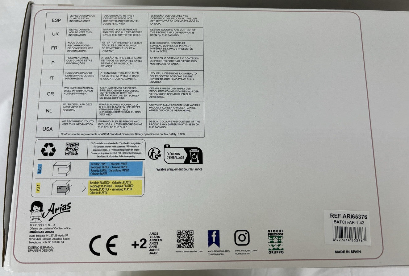 Adi viene presentado en una caja, lista para ser regalado a cualquier niño o niña que quiera disfrutar de su compañía. Con una altura de 45 cm, este muñeco es perfecto para abrazar y llevar a todas partes. Su cuerpo blando lo hace ideal para acurrucarse y dormir junto a él.