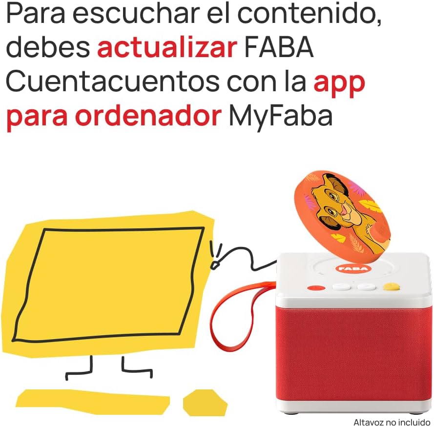 El Disco Sonoro FABA – El Rey León es un contenido de audio especialmente diseñado para acompañar a niños y niñas a partir de 5 años en una experiencia de escucha emocionante, educativa y llena de valores. Basado en la inolvidable historia de El Rey León, este disco permite revivir la aventura de Simba a través de la narración sonora, estimulando la imaginación y el disfrute de los cuentos sin necesidad de pantallas.