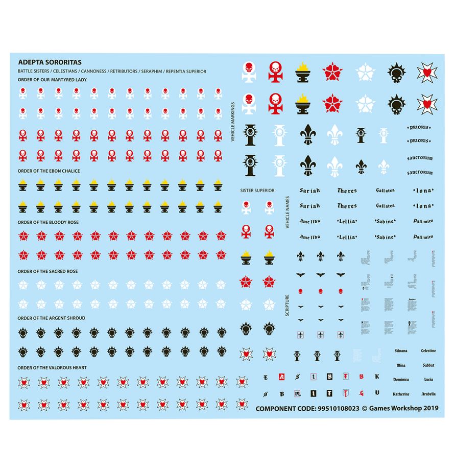 Personalización al detalle: Incluye más de 650 calcomanías de alta calidad para decorar tus ejércitos de Adepta Sororitas y Marines del Caos.