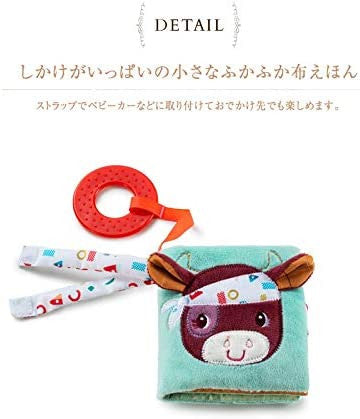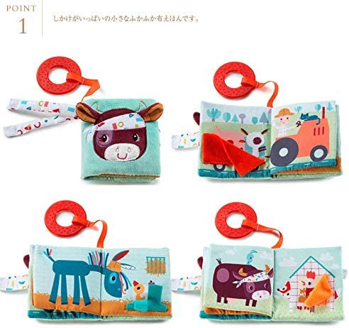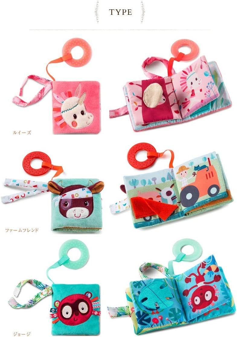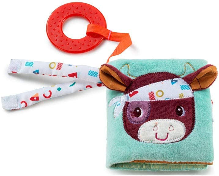 Libro de Tela la granja, con anilla de dentición dental.