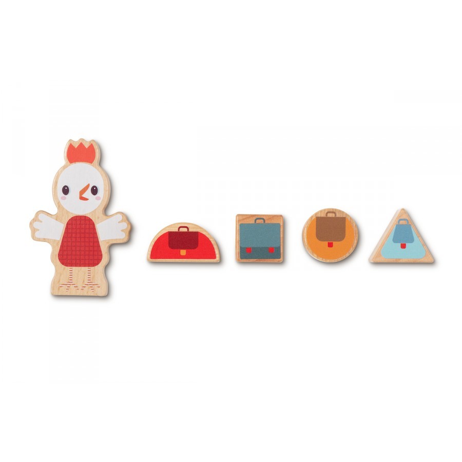Este juguete contiene un autobús de madera, 4 figuras y una figura de la gallina Paulette.
