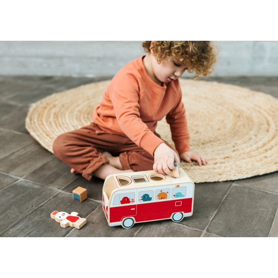 Autobús con forma de Paulette de Lilliputiens, un juguete despertador de madera para niños a partir de 12 meses, con cuatro piezas integradas para desarrollar el despertar y la motricidad fina de los niños. La gallina Paulette lleva a los pollitos a la escuela. Ayúdala a subir a los pollitos y su mochila al autobús. Un autobús de madera muy bien ilustrado, que permite a los niños aprender a asociar formas y colores de forma lúdica. Una vez que las formas estén en el vehículo y Paulette al volante del autobús, el niño se divertirá paseando el vehículo por la casa e inventando muchas historias.