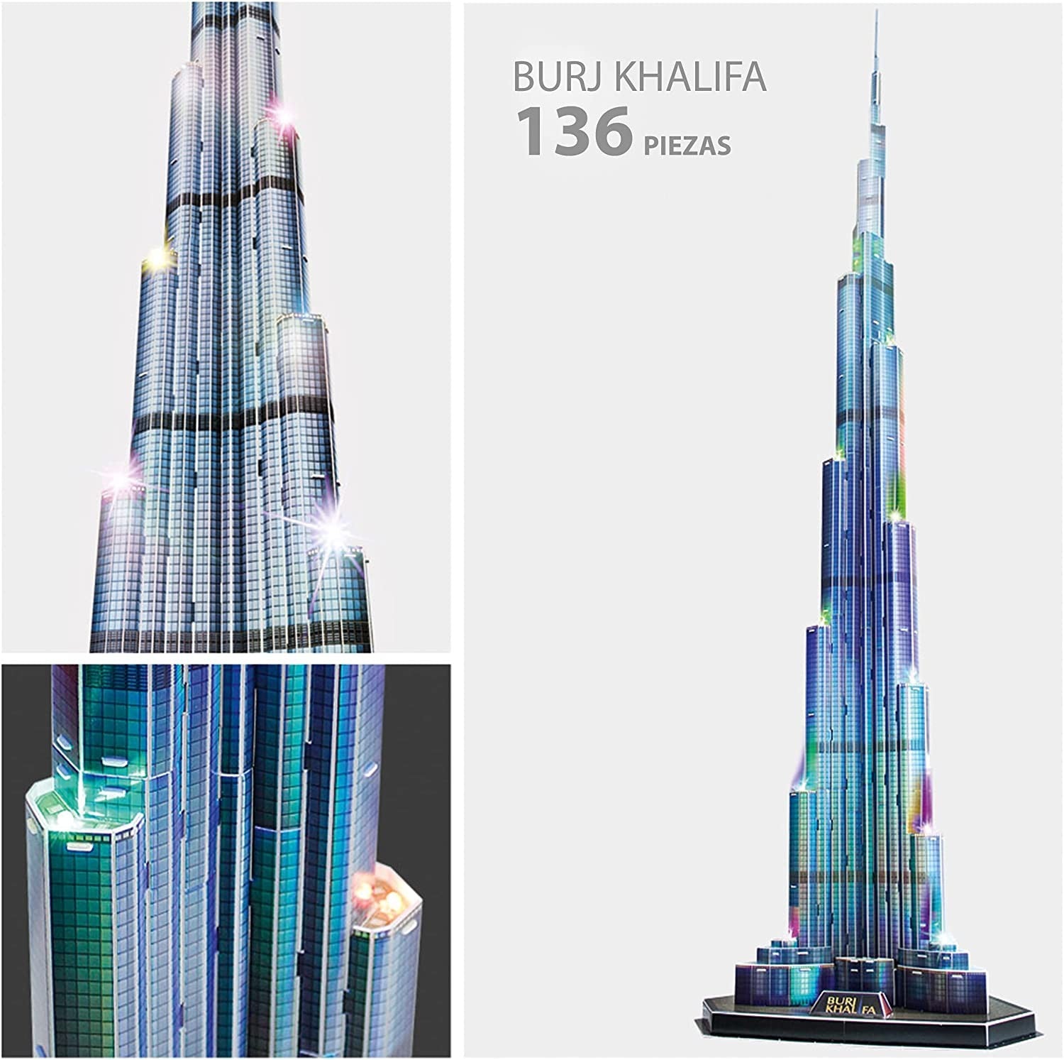 • PUZZLES 3D: El puzzle 3d adultos y niños Burj Khalifa LED, consta de 136 piezas. Al tratarse de un puzle 3D no necesita ni herramientas ni pegamento. Una vez se haya terminado se puede utilizar como objeto de decoración habitación.