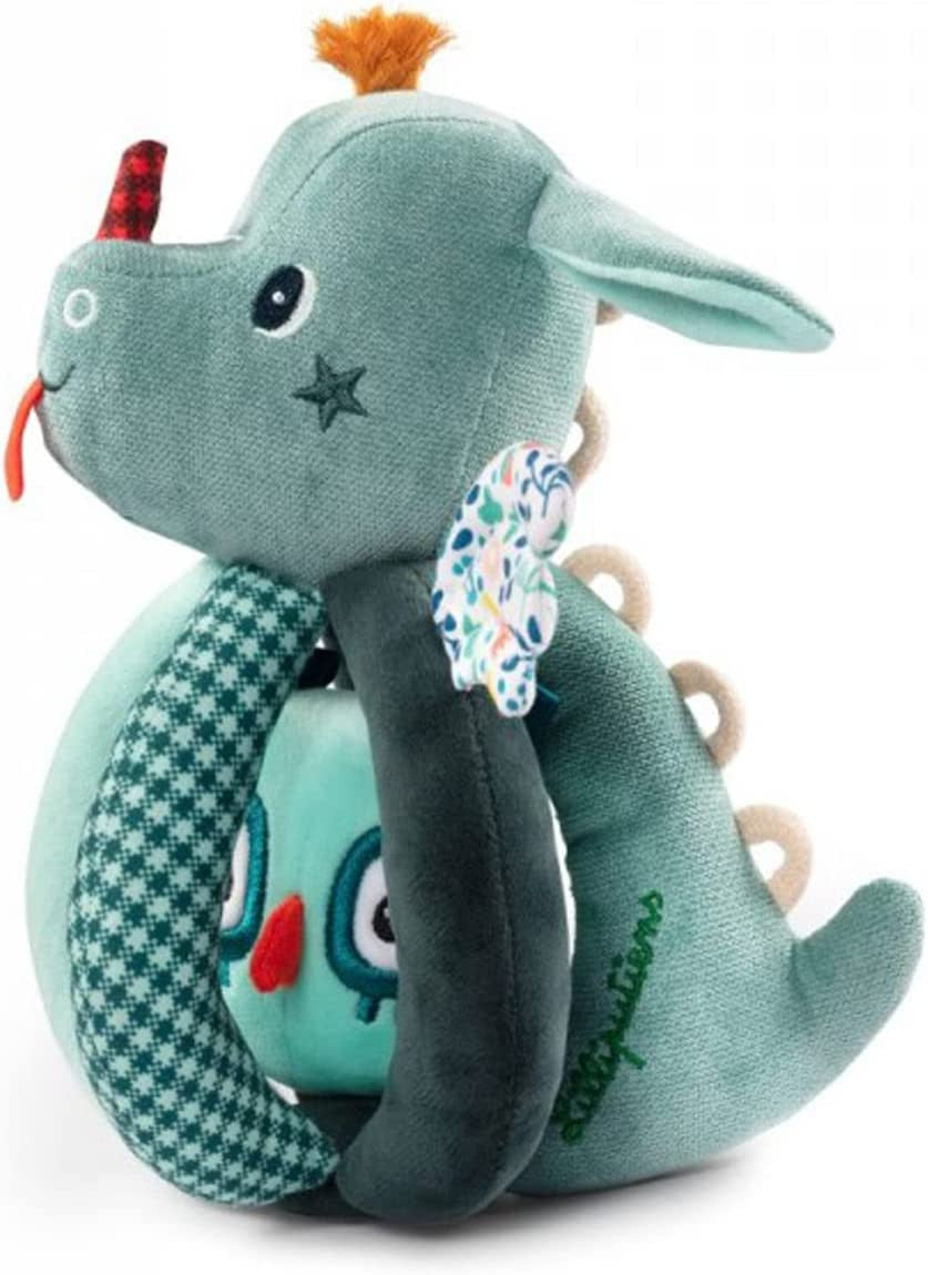 Sonajero de la marca Lilliputiens de nuestro amigo Joe , un original sonajero muy fácil de agarrar por las manos de los pequeños por sus asas . Un precioso sonajero con los colores de Joe el dragón, que ofrece una mezcla de texturas y muchas actividades para despertar al bebé: sonajeros, papel que susurra . Entre las asas se encuentra escondido su amigo Merlín el búho .